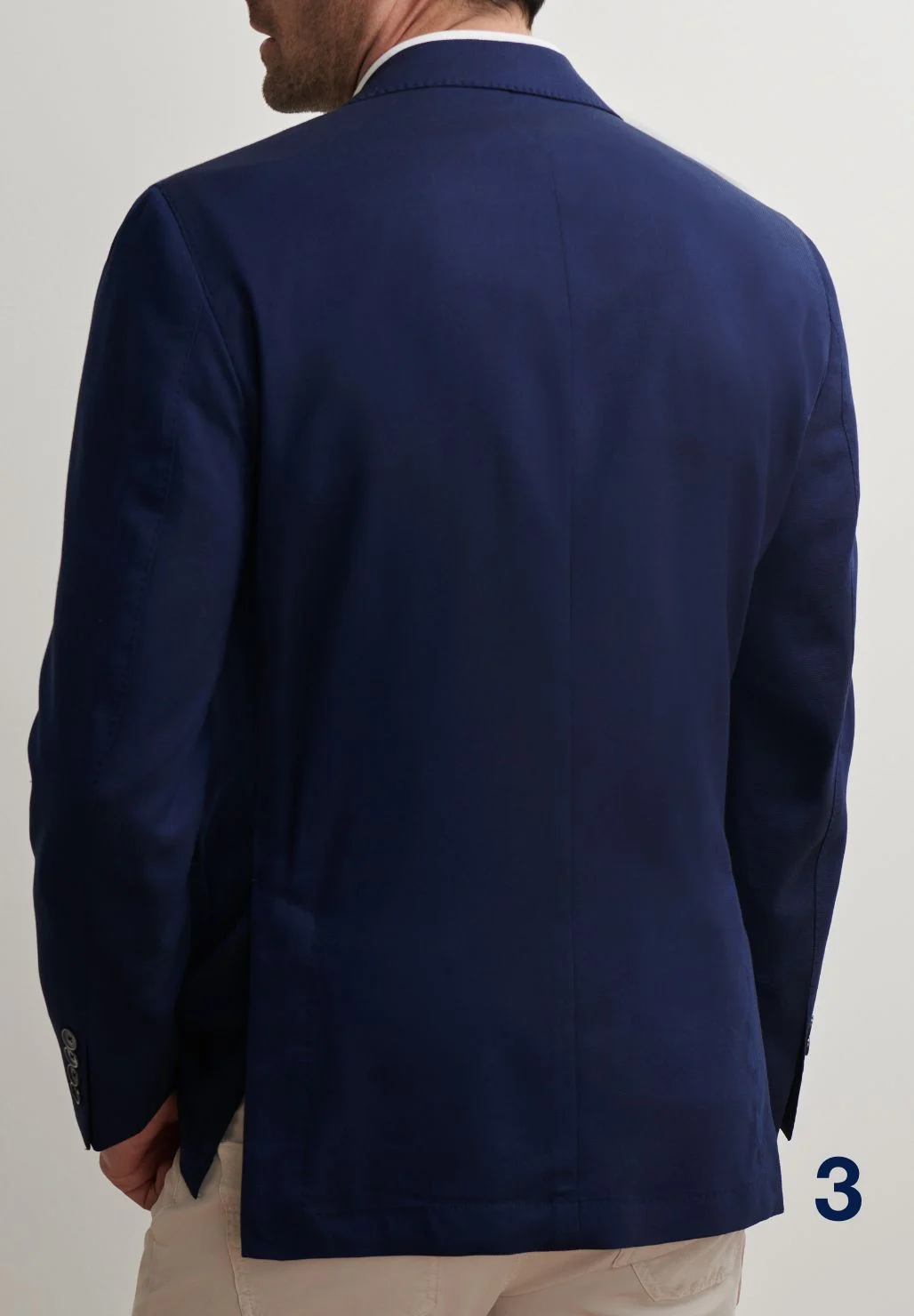 - Slightly shorter modern length and double vented back Available in Regular and Long Model is 6’2”, 190 pounds, wearing a size 40R soft jacket and 34 waist
