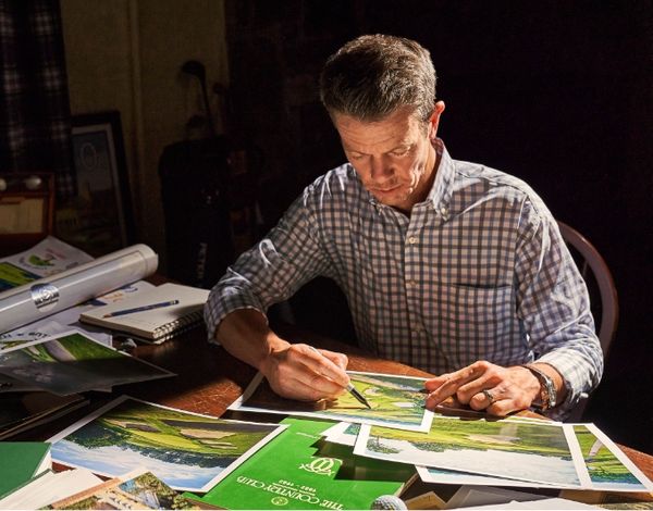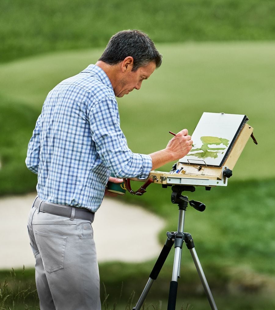 “I’m not trying to capture every blade of grass out there,” he says. “I’m not trying to photo-represent the course so it feels like you could walk into the painting, but I am trying to evoke a feeling or stir a sensation in the viewer that makes them want to be part of the event.”