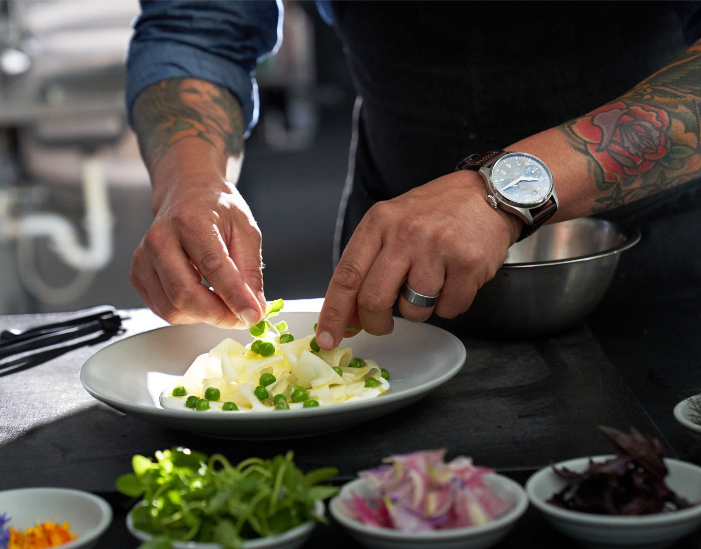 As fate would have it, one day someone in the kitchen didn’t show. His chef at the time asked him to fill in. “Each thing that they showed me, I tried to do at a high level, with some accuracy, and some integrity. And at the end of the shift, the chef said, ‘You belong in the kitchen.’ And there was really no turning back.”